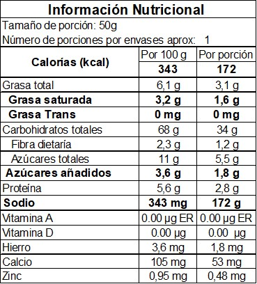 Presentación: Individual 45 g.Sabor: Chocolate dulce.Tipo: Panes aliñados & con queso.